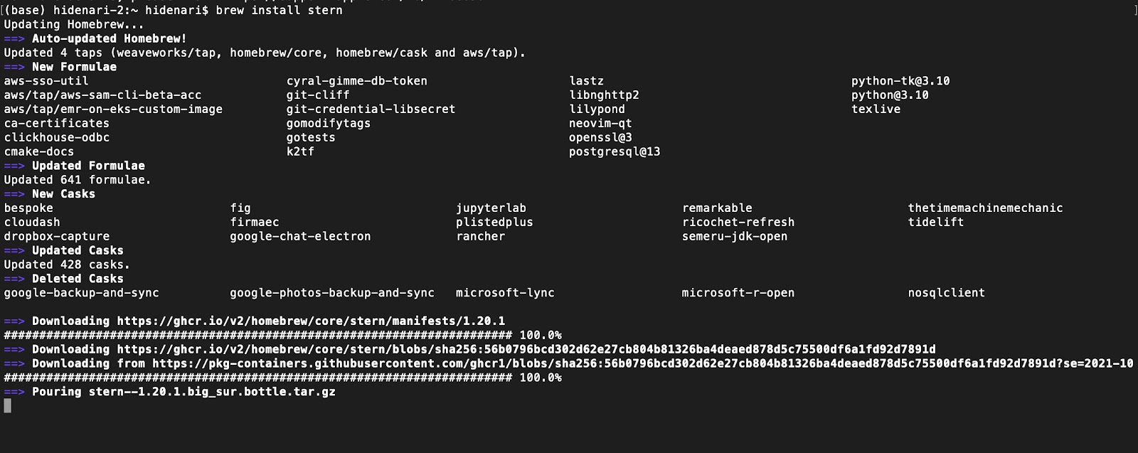 (以下、対象のpodからログが出力されていることが把握できる。)